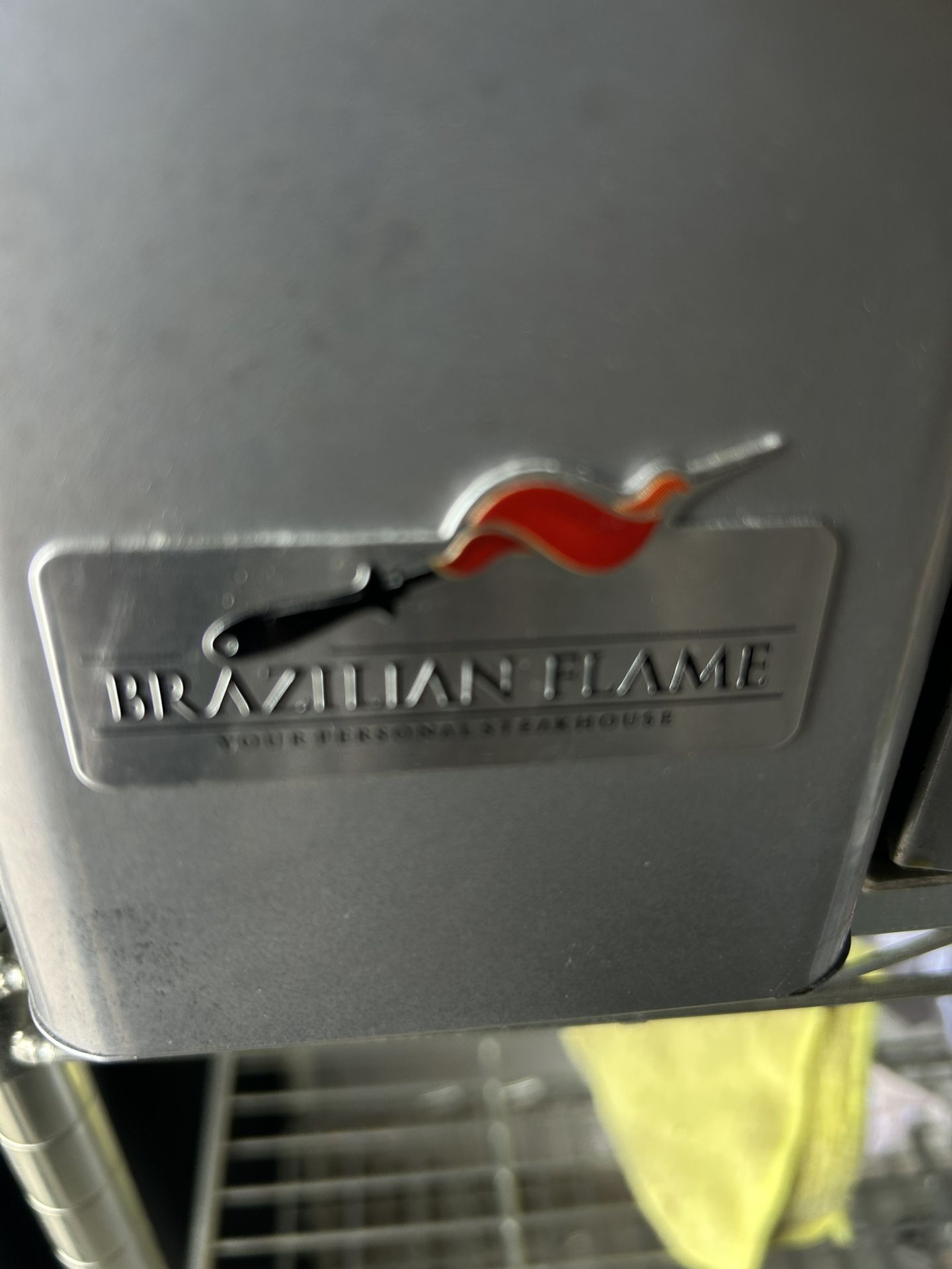 Brazilian-style gas rotisserie grill with 3 rotating skewers in good condition, used very few times, like new.