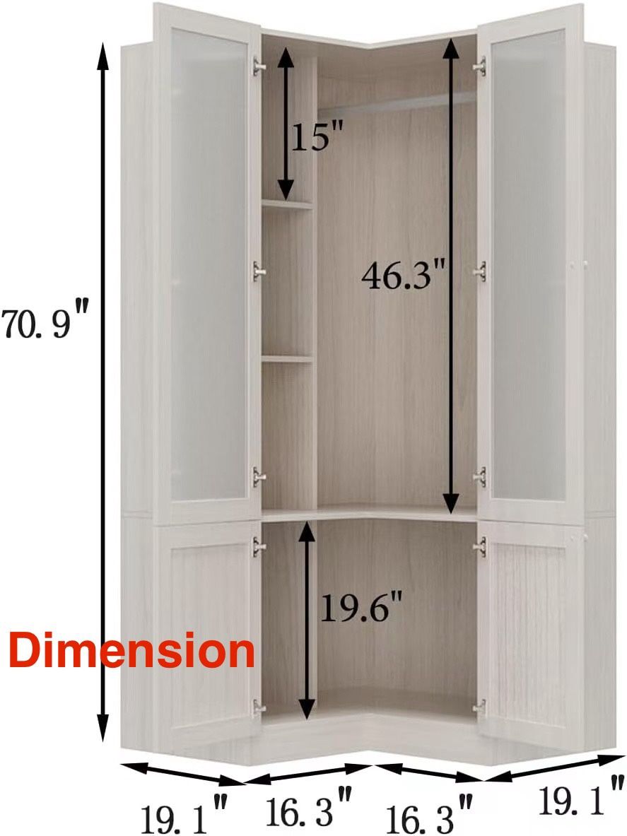 L-Shape Wardrobe Armoire Closet with Hanging Rod & Shelf, Bedroom Armoire with Frosted Glass Doors, Clothes Wardrobe with Gold Knob, Wood Grain, 35.4”D x 35.4”W x 70.9”H 👀please check photo 8&9 for dents area 🙏pay $199.00 + sale tax by cash or card in person (final sale). ✌️Not Accept price negotiation through thIs OfferUp App ; The price is as marked ✌️Pick up at showroom : zip code 80231(😀) or 80223(✌️) or 80241 (🥨)depending on item ✌️Hour : from 10 am to 7 pm(Monday CLOSE) ✌️Pick up only, No delivery , No shipping ✌️please stop by ASAP after all info(including address) provided OR ✌️double confirming “available or not” again if the address info is already provided for days.. 🙏can NOT relocate inquired item to other showrooms but you can wait to see if it is available in other showrooms (current item location zip code can be distinguished by 🥨😀✌️) ✌️ ALL furniture are new and not used at all. However, due to few careless or overweight handling during shipping, transport or assembly, few of them will have mild scratch or dents. So does some inventories in the box. We try our best to photo those in pictures after assembling them. The price is adjusted based on those issue that we notice. ✌️ Item sold as the picture (it is assembled ) or it will be mark as in the boxes 🥰Reminder: Please pay attention to the address I send you. NOT all showrooms carry the item you inquiring. There is higher chance the item may be ONLY available currently in this Specific ADDRESS I send you. If you inquire multiple items, they may be located in multiple different showrooms…please pay attention to address. 🙏NO RETURN, NO REFUND, NO EXCHANGE
