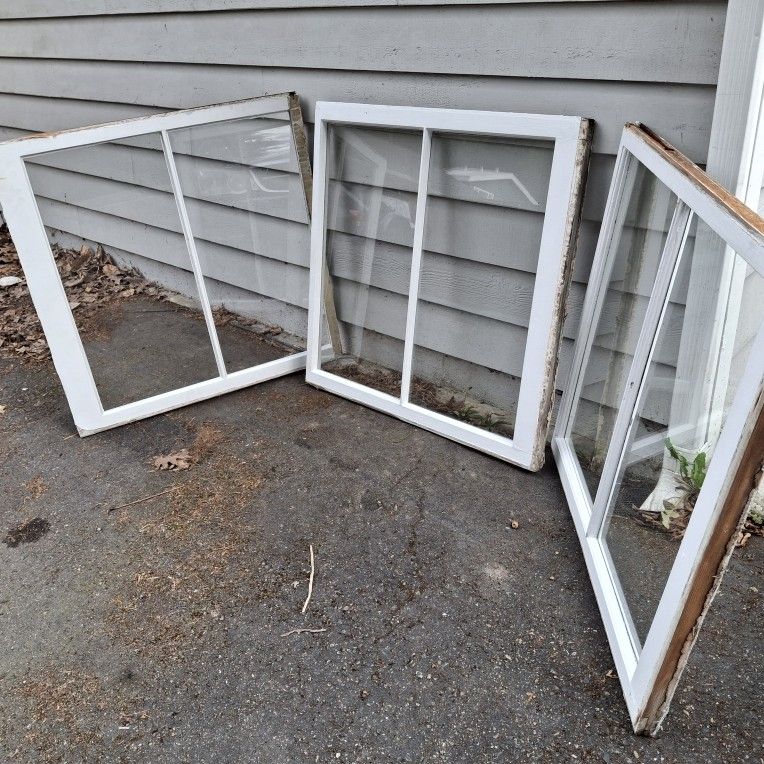 Excellent condition wood frame windows with Grids Single pane 36x36 $30 each or $75 all 3 Craftsmen style