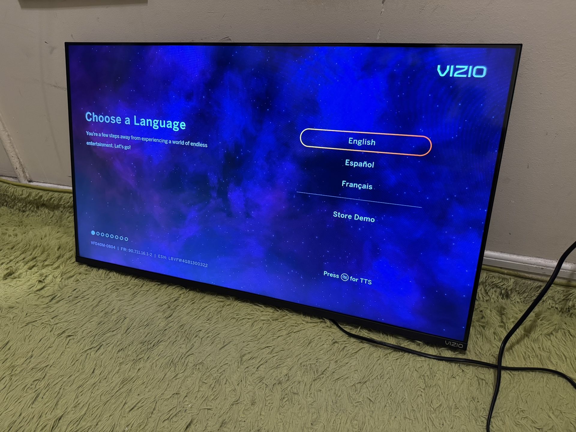 Vizio 40 inch Full HD 1080p Smart TV. -Alexa, Chromecast, and Bluetooth headphone compatible -Purchased a few months ago, barely used -Comes with full motion wall mount and original remote -Pick up in Hell’s Kitchen