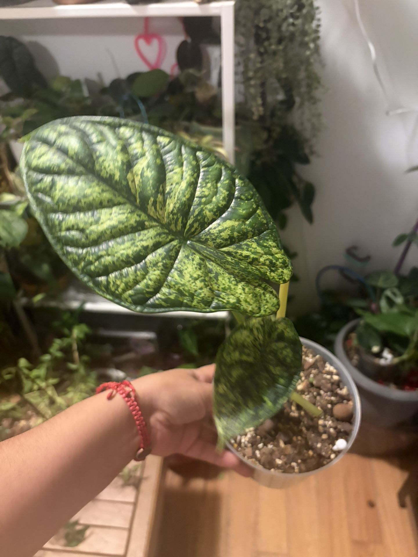 Alocasia dragon scale mint offspring for sale .. #2 pic (for reference)is the one one for sale didnt want to detach from mom beautiful color and genetics