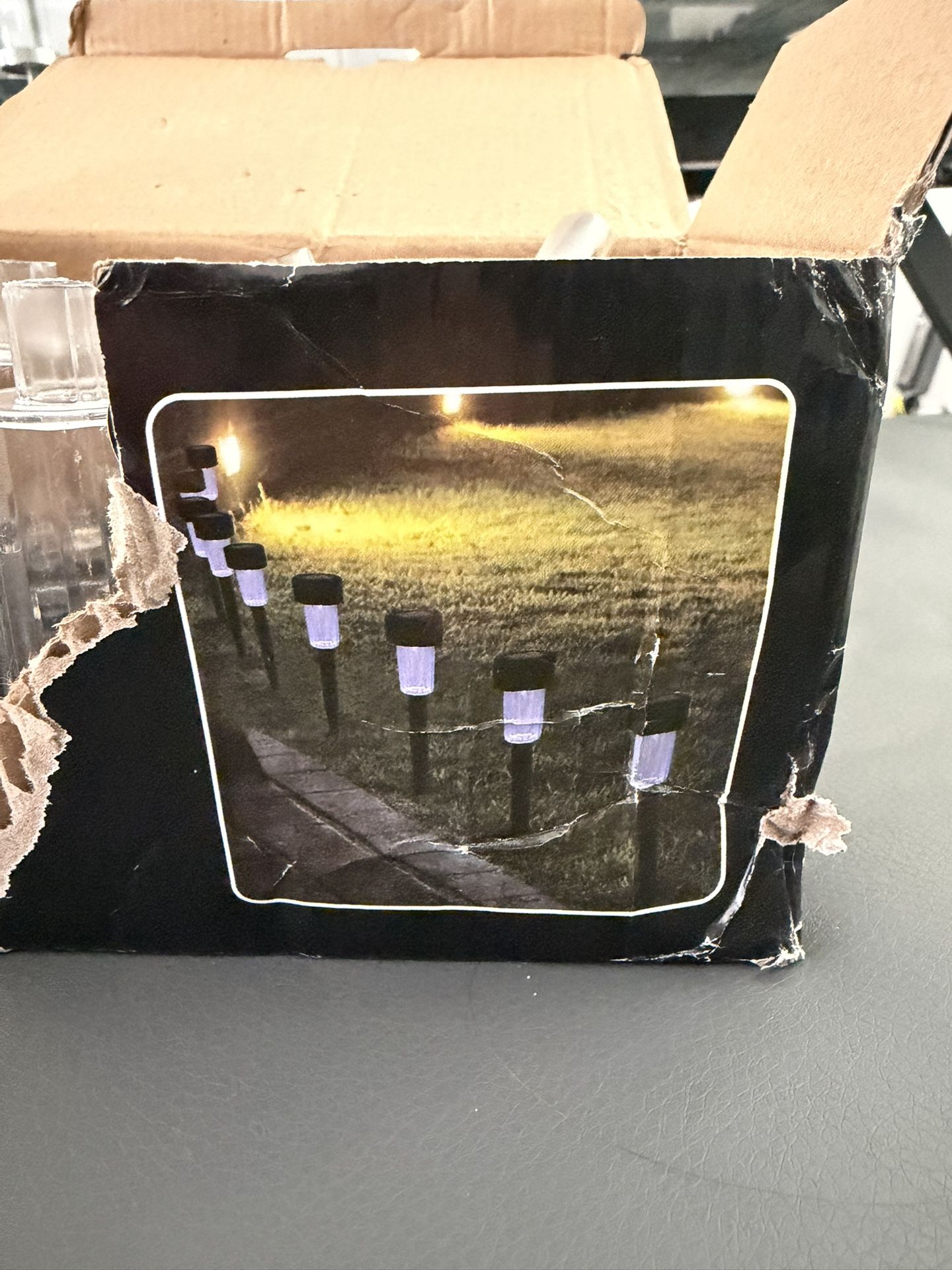 Solar lawn/pathway light set. Multiple lights to line your walkway, driveway, or garden. Charges during the day and turns on automatically at night. No wiring. No batteries. Just stick them in the ground and go. Includes: – Full set of solar lights (as pictured) – Ground stakes – Easy assembly Great for yards, patios, sidewalks, landscaping, or holiday decor. Box is a little worn but lights work perfectly.