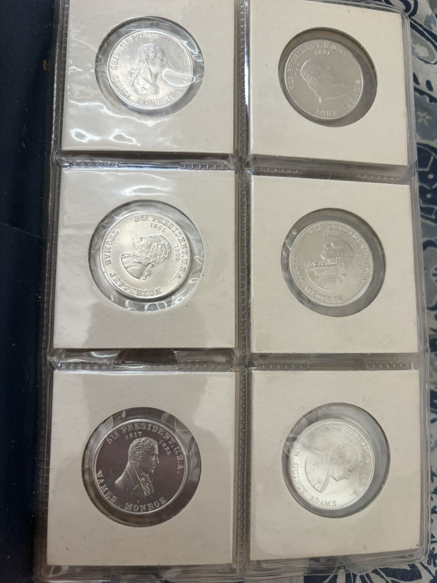Vintage US presidential collectible tokens, aluminum lot of 36 coins/ tokens Made of aluminum. Minted in late Vintage US presidential collectible tokens, aluminum lot of 36, Minted In 1966 Presidents up to Lyndon B Johnson Comes with blue storage coin book album