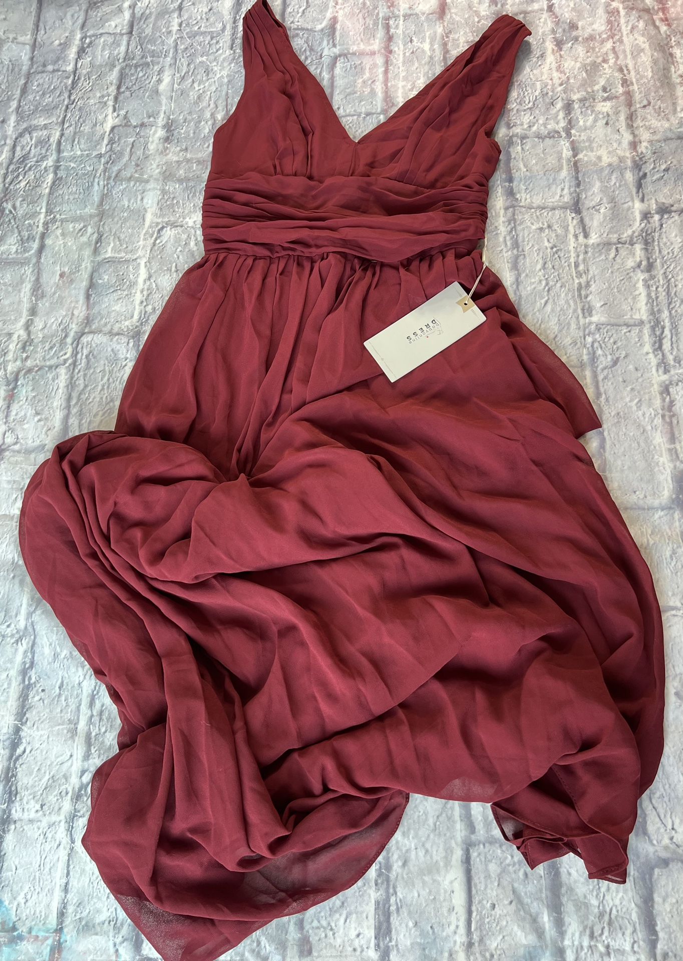 BabyOnline Dress Womens Elegant V-Neck Ruffles Bridesmaid Dress Burgundy Size 2 Bbz
