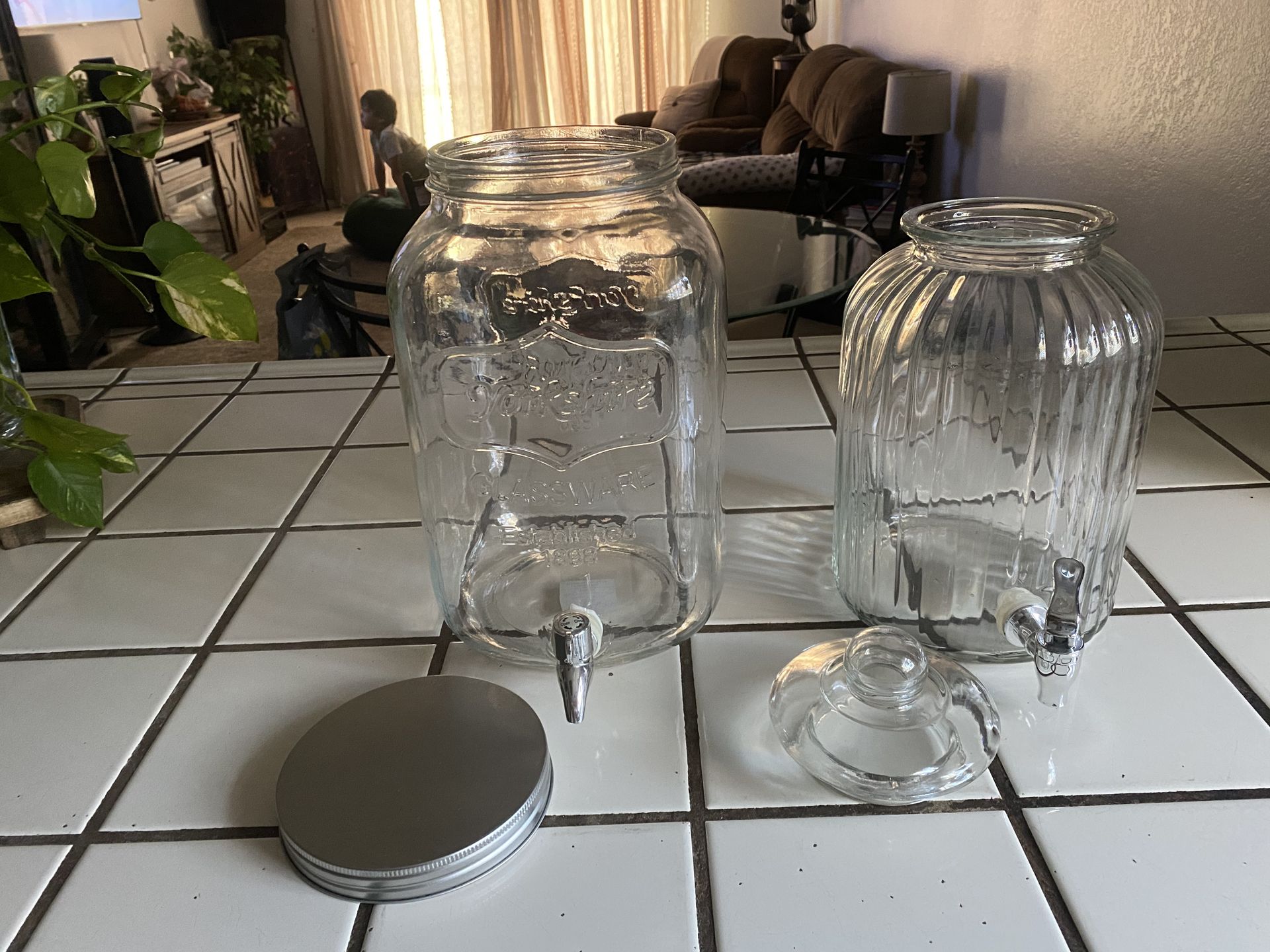 Glass drink dispensers both work very well neither one of them leak. I am asking $20 for the mason jar dispenser and $15 for the other one pick up Manteca.