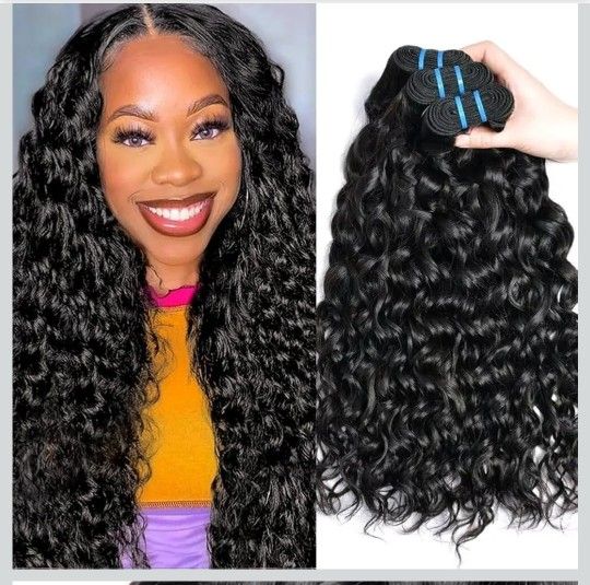 💥PICK UP AND CASH ONLY! MY PRICES ARE FAIR AND FIRM THANK YOU 💥 💗PRICE IS FOR ALL 3 BUNDLES 💗 Water Wave Human Hair Bundles Wet and Wavy Bundles Human Hair Brazilian Unprocessed Remy Hair Water Wave Weave Extensions 18 20 22 Inch Natural Black