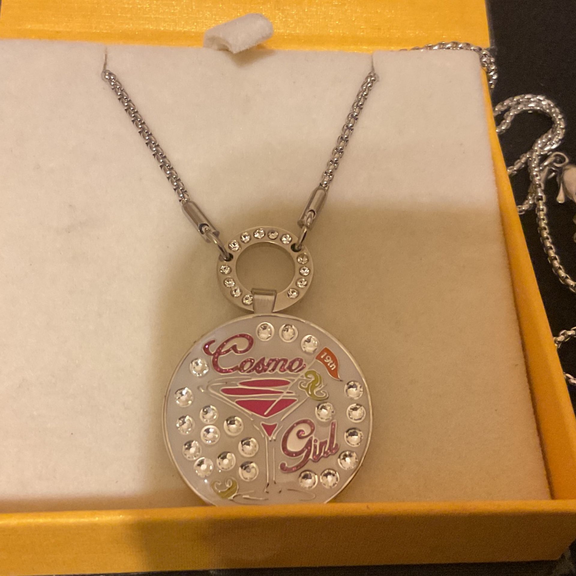 20”SilverTone Necklace With Attached Magnetic( Cosmo Girl) Pendant With Rhinestones ,by Navik USA