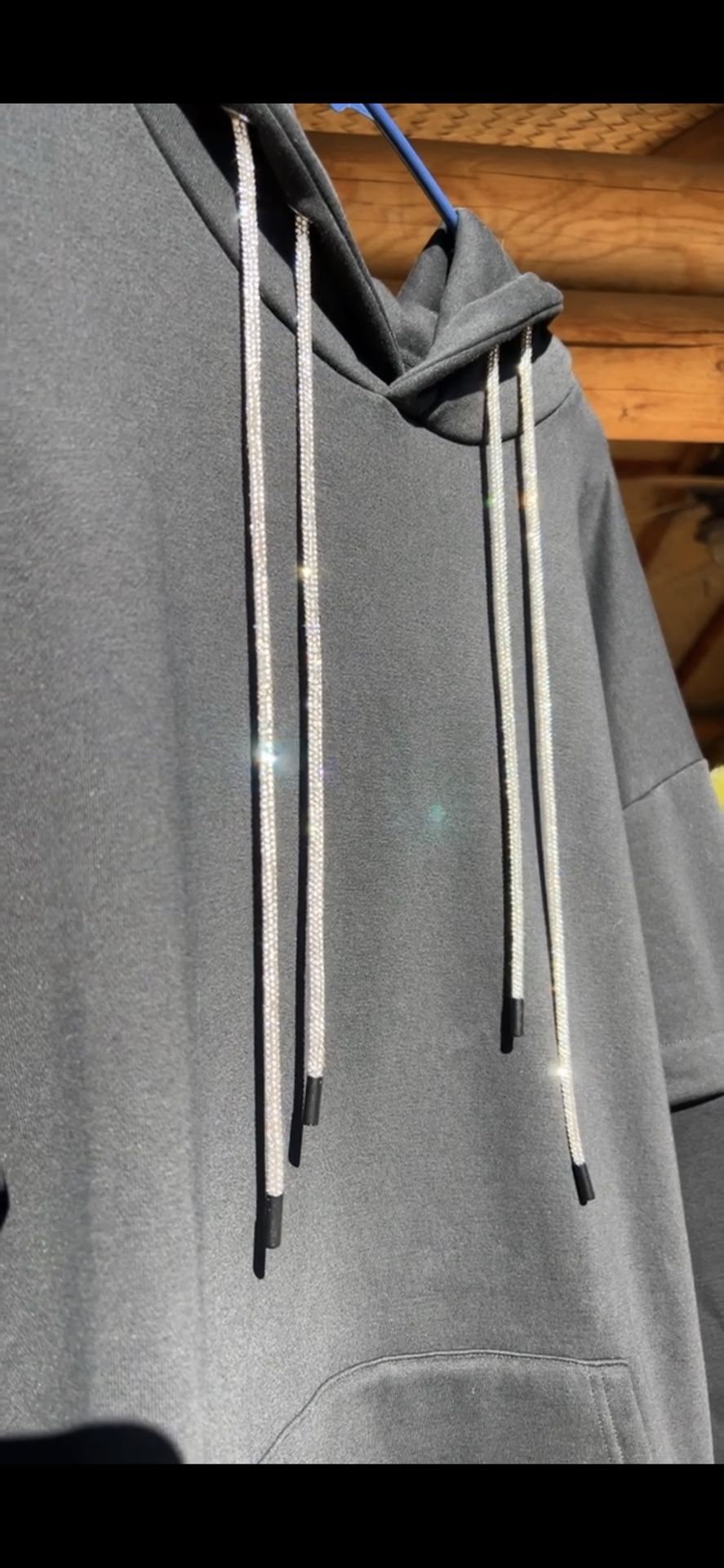 AVOID THE FASHION HOODIE. OVERSIZED BLACK HOODIE WITH BUSSDOWN DIAMOND STRING AND REMOVABLE SLEEVES. COMES IN MEDIUM OR LARGE, LIMITED SUPPLY!