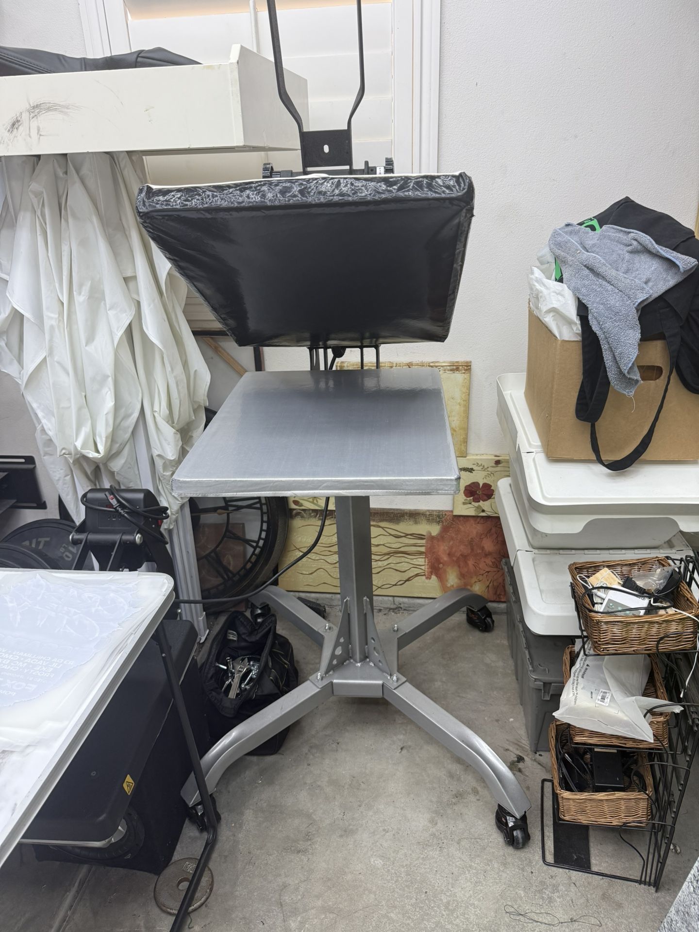 Used but in working condition. Automatic release heat press with light or firm pressure dial includes caddy which is around $400 alone