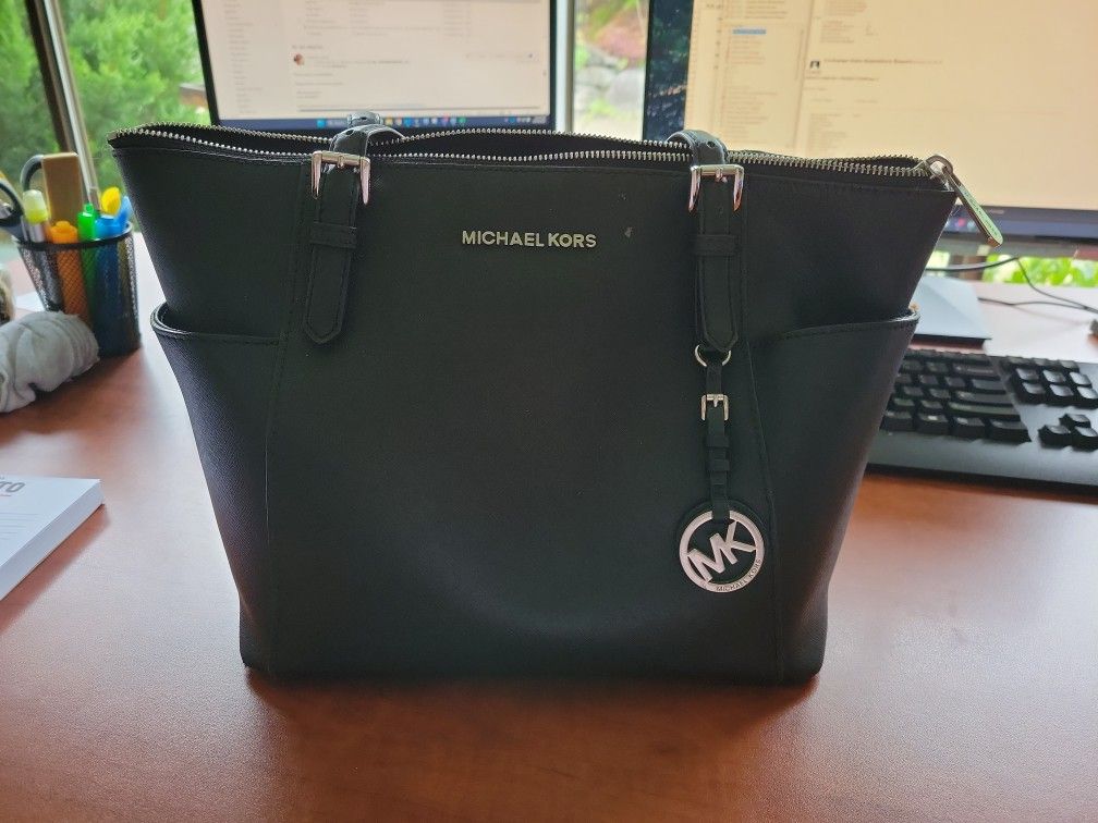 Well loved but lots of life left! Small area of wear on front... pictured. Zip top tote 15 wide 10 high 4.25 deep Black saffiano leather