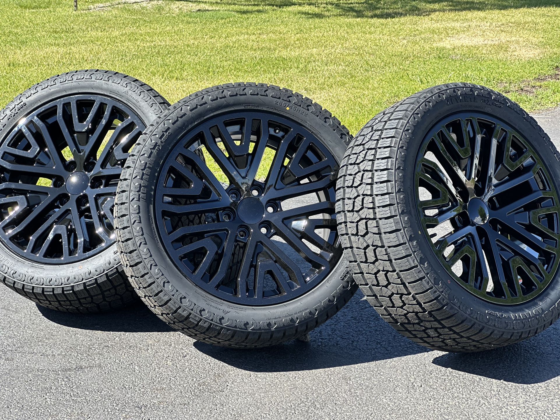 NEW 22” Wheels GMC Sierra Yukon rims Chevy Silverado Tahoe A/T 33” Tires NEW aftermarket Black 22” Wheels GMC Sierra Yukon rims Chevy Silverado Tahoe A/T 285/45R22 Tires Dodge Ram 6 lug NEW aftermarket 22” wheels nice black factory finish 6x5.5 bolt pattern wrapped in Advanta ATX-850 A/T tires size 285/45R22 All Terrain for 6 lug chevy, GMC, Escalade, and Dodge trucks and SUVs (please read below). Rims are gloss black, new, nice six triple spoke design, 22” x 9” inches in diameter with a factory offset (22x9.0J ET+28mm). Black center caps also included. GMC and Chevy center caps are available. Tires are Advanta ATX 850 All Terrain size 285/45R22 A/T amazing in all weather conditions including off road mud and snow. New with 0 miles on them. Bolt Pattern: 6x5.5 inches (also known as 6x139.7 mm) Price is only $1750 before tax Installation, test fitment, lug nuts, center caps, and TPMS sensors are available. Cash, Zelle, Card (+2.6%) and financing is accepted Will fit the following (please contact me if you have fitment questions on stock vehicles) LIFTED Chevrolet Silverado 1500 Tahoe Z71 Suburban LTZ Avalanche AT4 Trail Boss, GMC Sierra 1500HD Yukon Denali High Country Limited (most years and models from 1995 to 2024)
