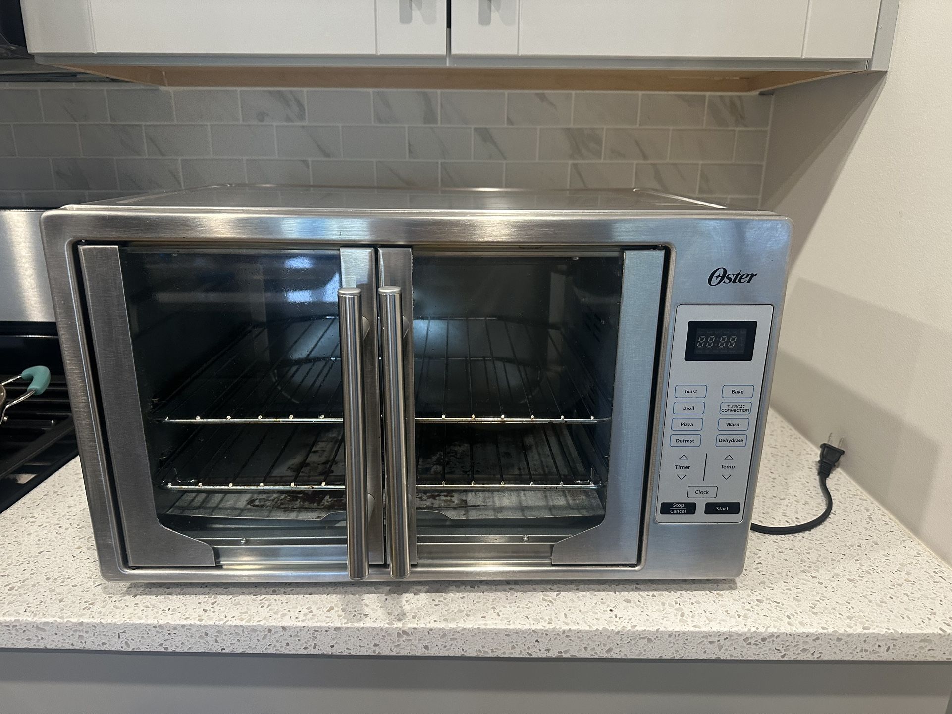 Brand Oster Color Stainless Steel Product Dimensions 20.15"D x 23.8"W x 15.1"H Capacity 24 Cubic Inches Special Feature Digital Wattage 1500 watts Single door pull opens both doors with 1 hand ease and convenience Digital controls provide precise cooking time and temperature to take the guesswork out of cooking Turbo convection baking technology cooks faster and browns more evenly Two racks provide maximum cooking flexibility; This oven control allows you to slowly cook your food at a preset temperature of 150°F for an adjustable time of upto 6 hours Extra-large interior accommodates 2 16-inch pizzas; Preheat setting gets oven temperature up to where you need for precise cooking