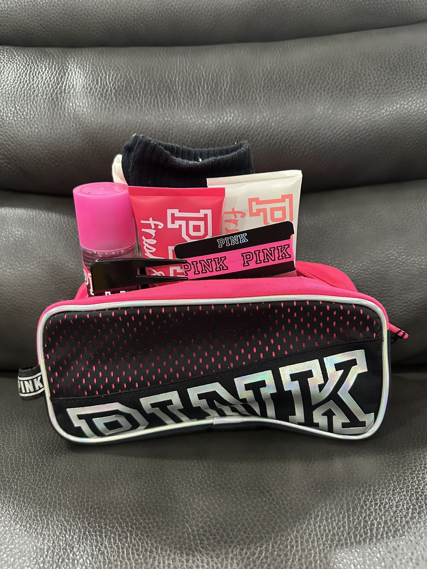 Includes -Comb -Hair tie -Bag -body mist -body lotion -body scrub -socks