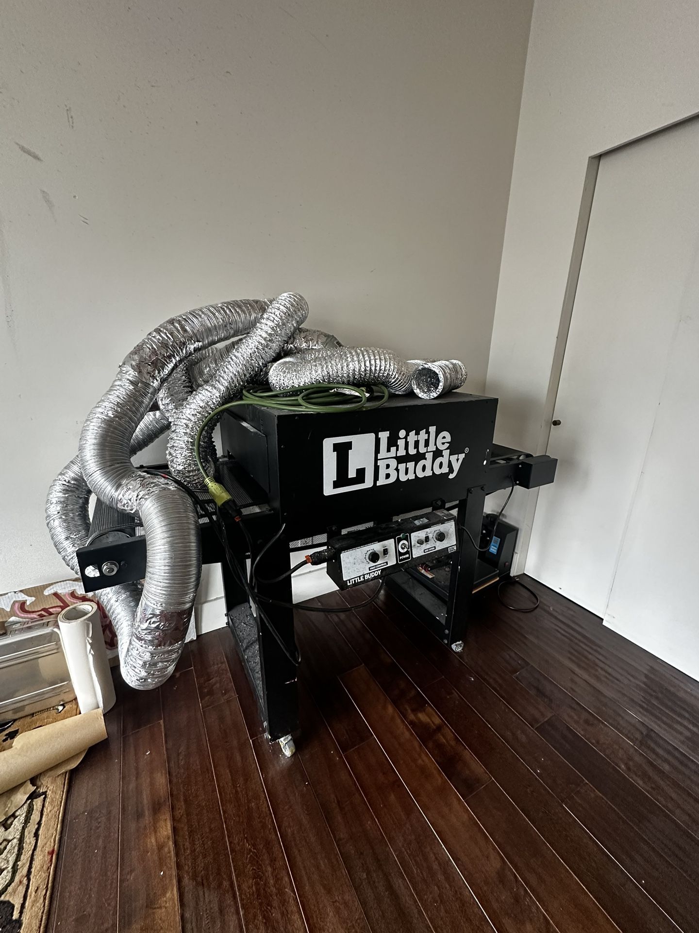 Functional Little Buddy Conveyor Dryer for screen printing. This one is 5.5ft long with an 18" belt, 120V, 2000 Watts. Comes with all the ducts you see in the pic. $1,250 obo