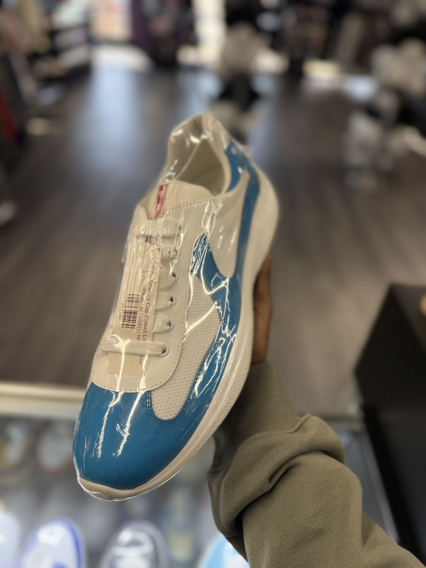 Prada America Cup Patent Low Aqua
