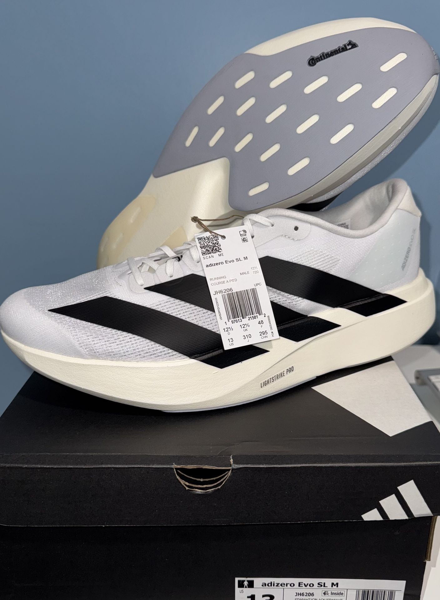 ADIDAS ADIZERO EVO SL WHITE BLACK AUTHENTIC BRAND NEW PROOF OF PURCHASE SIZE 13 MEN $$$$110$$$$