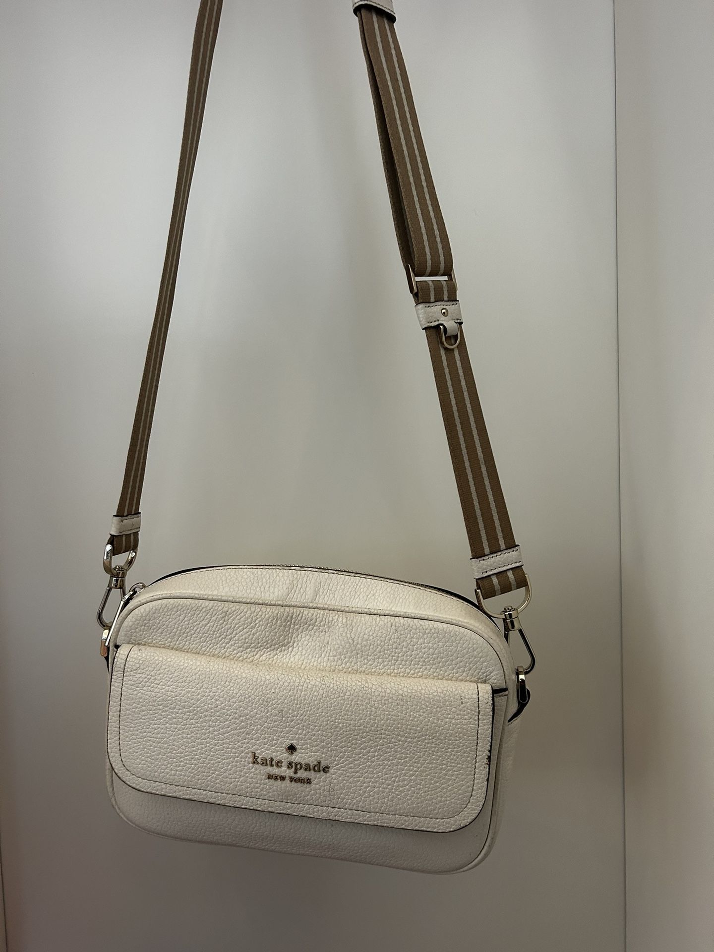 Kate Spade Crossbody purse in color cream with khaki strap. Clean and some minor wear.