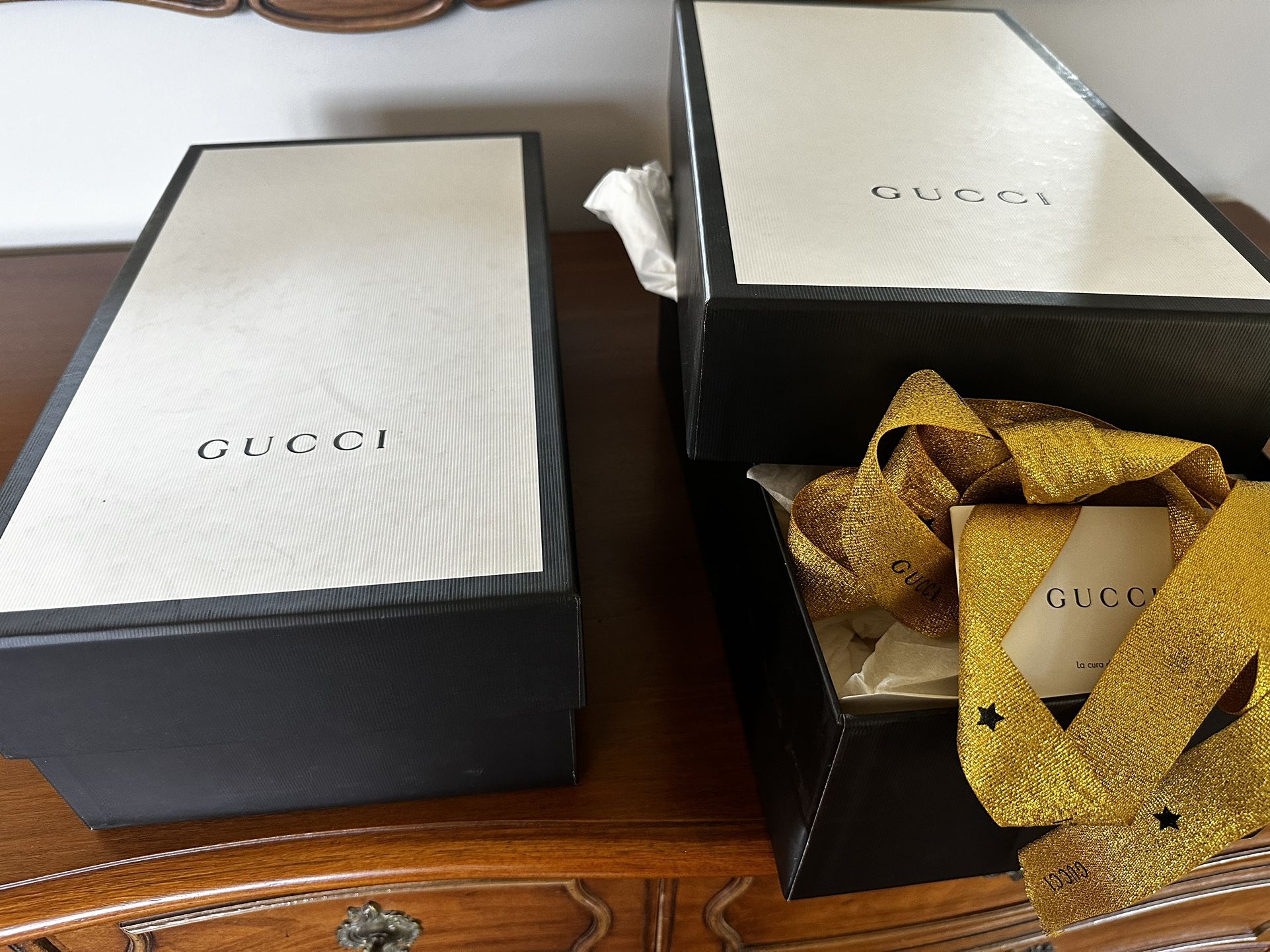 2 aauthentic Gucci empty shoe boxes. Ribbon included if you get both. Last photo from ebay listing for price reference. Open to fair offers. New! $50 each obo.