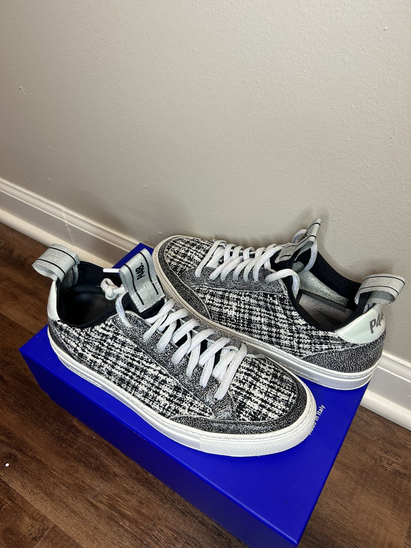 Houndstooth women’s P448 casual sneakers - original box - alternate gray laces - P448 sticker