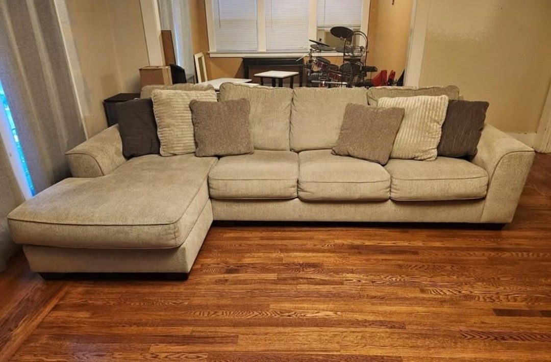 GRAY COUCH FOR SALE IN GOOD CONDITION SIZE IS : 125" X 70"ON LEFT SIDE & 44" ON RIGHT SIDE. Price negotiable. Make an offer Cash - Zelle