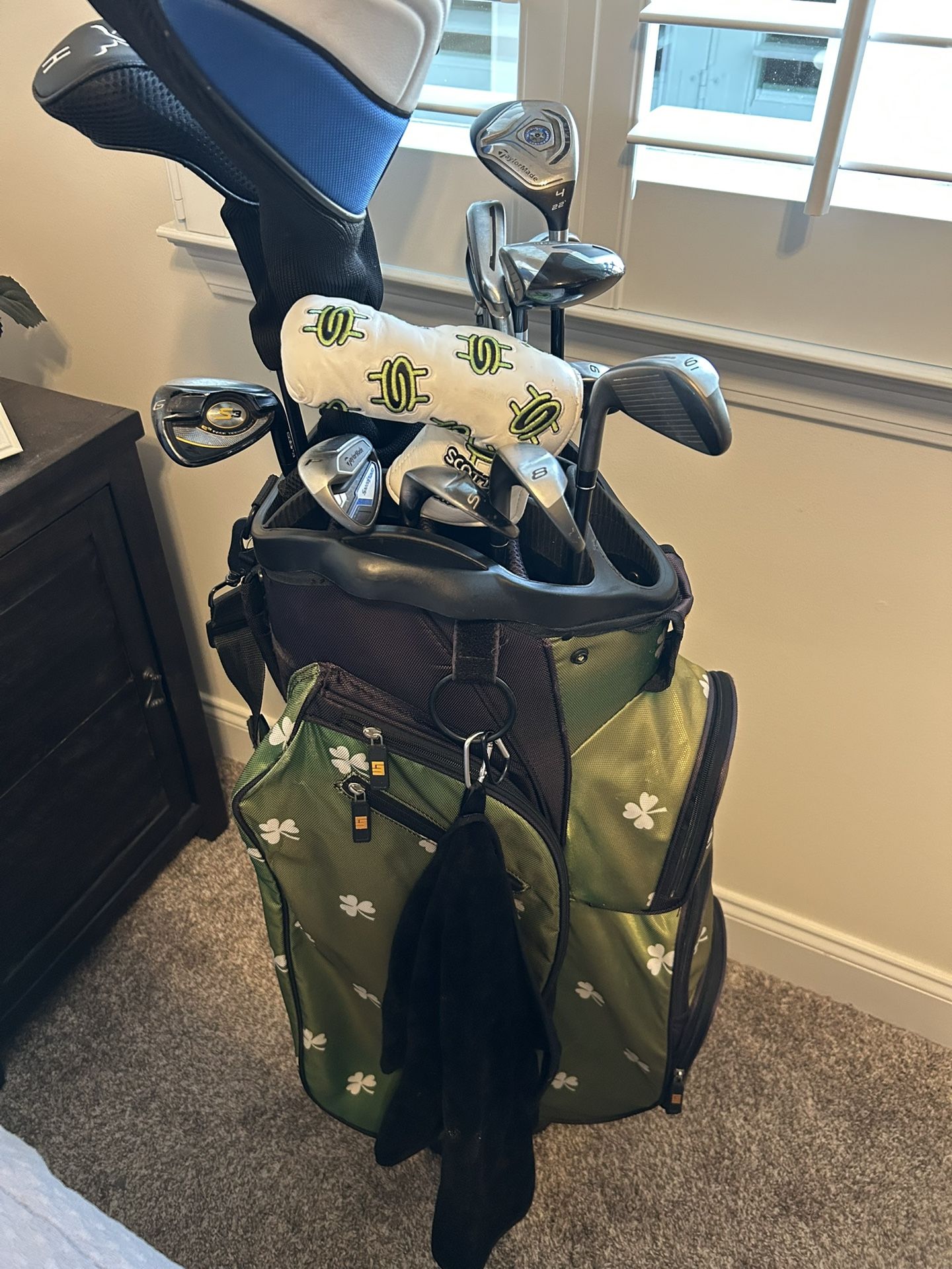 Taylor Made Graffite Driver, 3-Wood & 5 Wood and 2 Hybirds Taylor Made 5 Iron to 9 PW & S Wedge Wilson Putter Over Sized Bag, Balls & Tees , complete set, paid well over $1000 $400 OBO getting all new