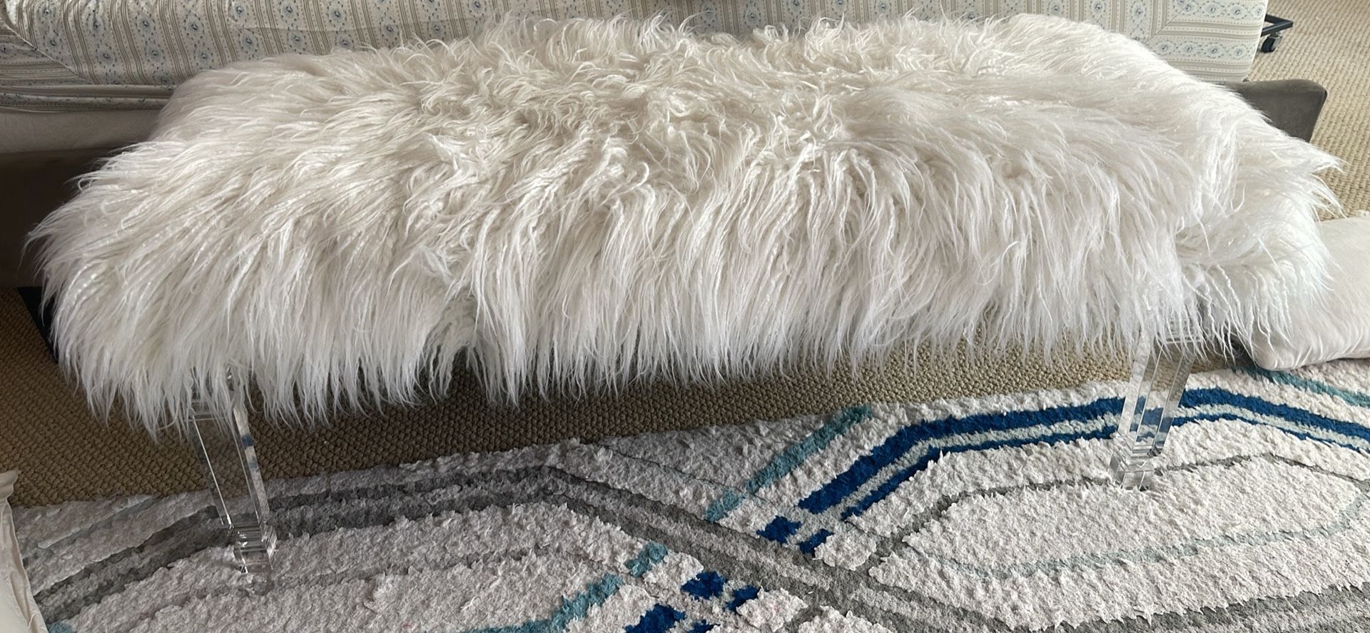 I have this beautiful, furry bench with Chrystal legs very modern and excellent condition. I just need to get rid of it as soon as possible. Make me your best offer.