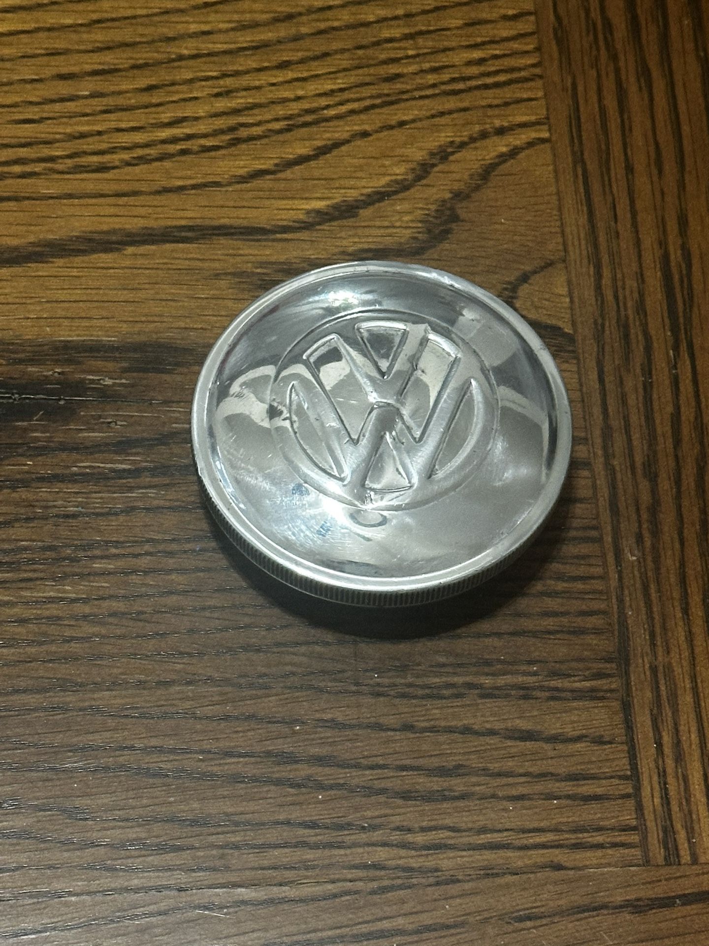 Here is an original blau early VW gas cap, 80 mm. Polished to a super shine with brand new gasket, works perfectly. Keyword VW Volkswagen bug beetle gear type one Wolfsburg German vdub oem nos new used part club west 19 early show chrome polished buggy buddie trade accessories
