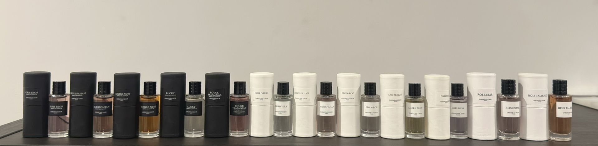 I have a series of Dior dabbers 7.5ml & 10ml Oud Ispahan EDP 7.5ml Oud Ispahan Esprit 7.5ml Ambre Nuit EDP 7.5ml Ambre Nuit Esprit 7.5ml Gris Dior EDP 7.5ml Gris Dior Esprit 7.5ml Lucky Esprit 7.5ml Dioriviera EDP 7.5ml Rose Star EDP 10ml Bois Talsiman EDP 10ml Eden Roc EDP 7.5ml eBay . Com/perfumewishlist to order
