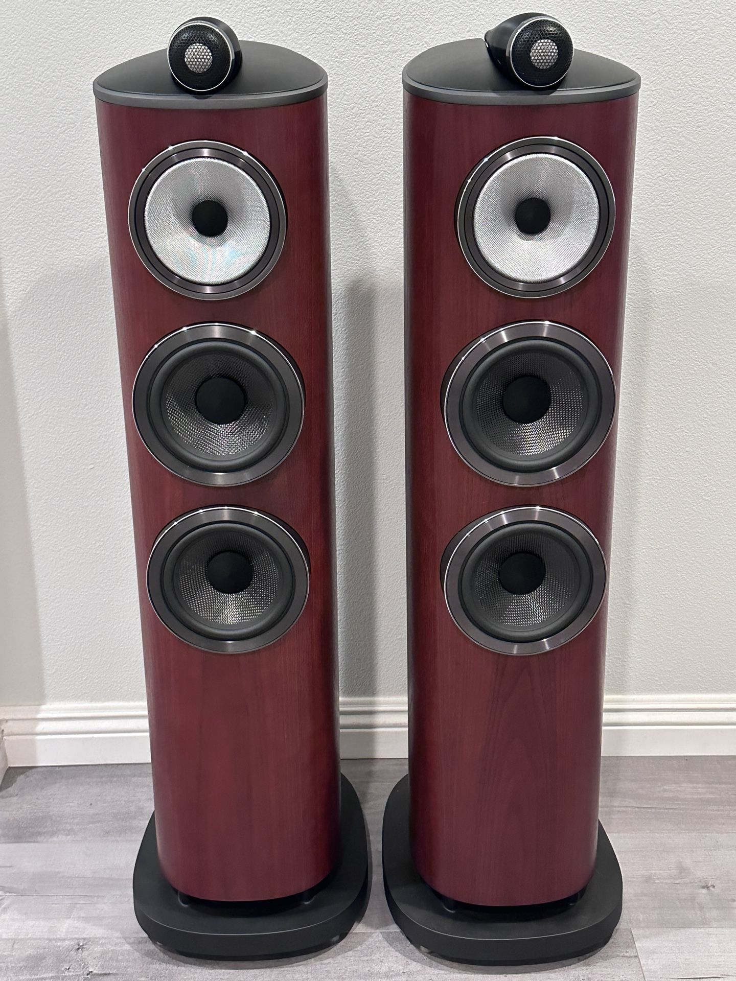 Bowers & Wilkins 804D4 rosenut floor standing speakers in excellent condition, no damage nor any defect, some accessories are not been opened, grill covers, spikes and jumper cables. No need to introduce this world famous speaker, it can match almost any system and deliver the most natural and relaxing sound with very big sound stage. Can demo them in Ontario California (91761) by appointment, no low-ball offers or scammers please.