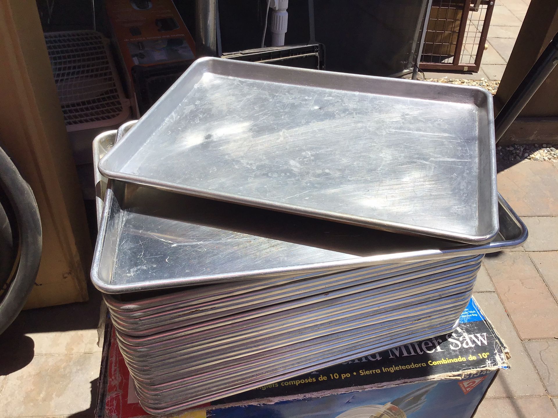 22 pieces. 1/2 sheet pans restaurant style in good condition sizes: 12” x 17” x 1” I also have 1 full sheet pan.