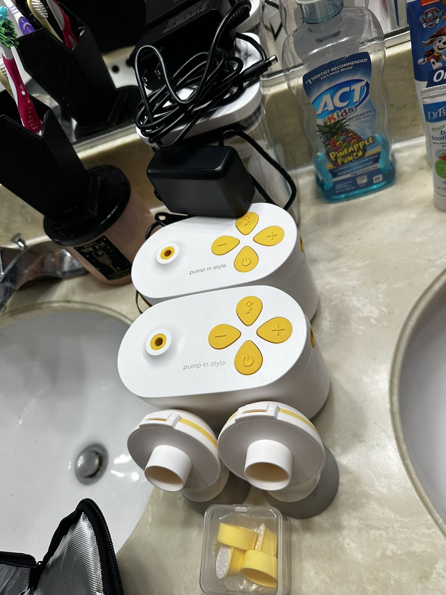 Medela Pump in Style 2x - •2 Motors •2 Chargers •Flange Cushion •Breast Pads •Duckbills & Membranes •Nipple ruler •2 Flange Connectors •Travel Bag *No Bottles* $20