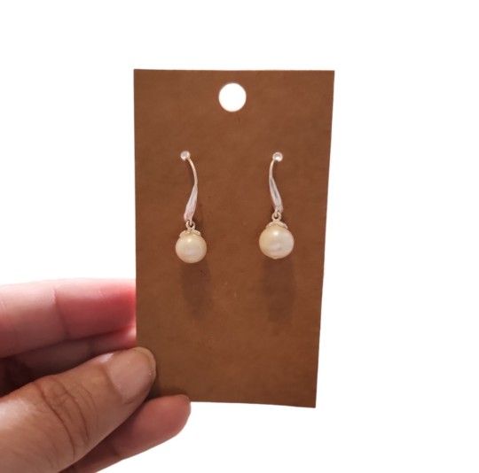 Vintage Sterling Silver Pearl Drop Earrings 1"