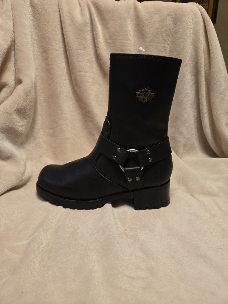 Harley Davidson Harness Zip Moto Boots size 6.5. Heel height 1.75". Like new. Worn 3 times. Stored in original box.