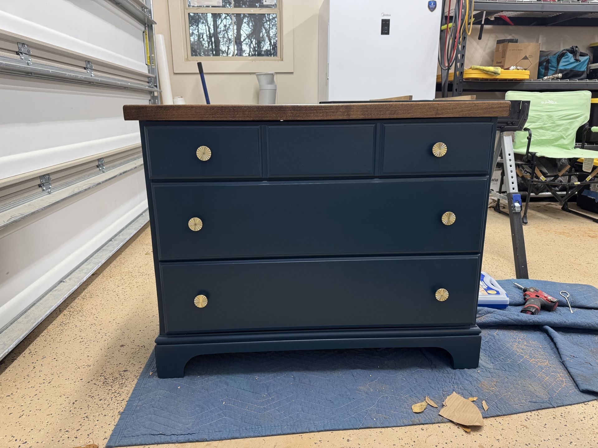 Refinished solid wood antique dresser. Very spacious three drawer cabinet. Would be a great entryway piece. $250 OBO