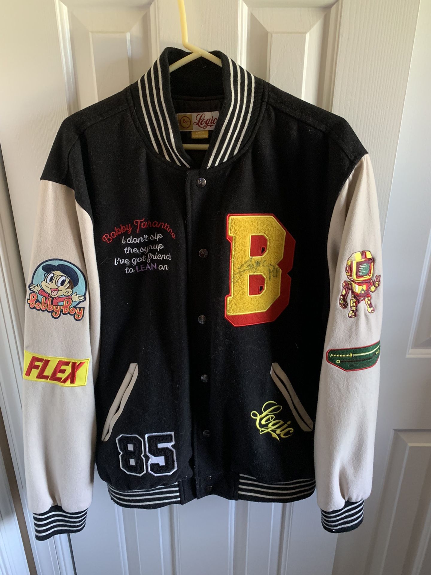 Available ✅ size Large This is not the same jacket used in the Contra music video by Logic. But if you look at that video, he is wearing the same style jacket. Custom embroidered logic BT jacket signed by the man himself on the ‘B’ (rp standing for rattpack) • Condition is used and only has one tiny stain that I have not tried to take out on the sleeve. • -Story: bought on ebay brand new in the packaging with only one hole in it for Bobby to sign it on stage. Only been worn a couple times since then. • Additional questions, pictures and interest, please Dm. Always happy to make a deal happen :) God Bless