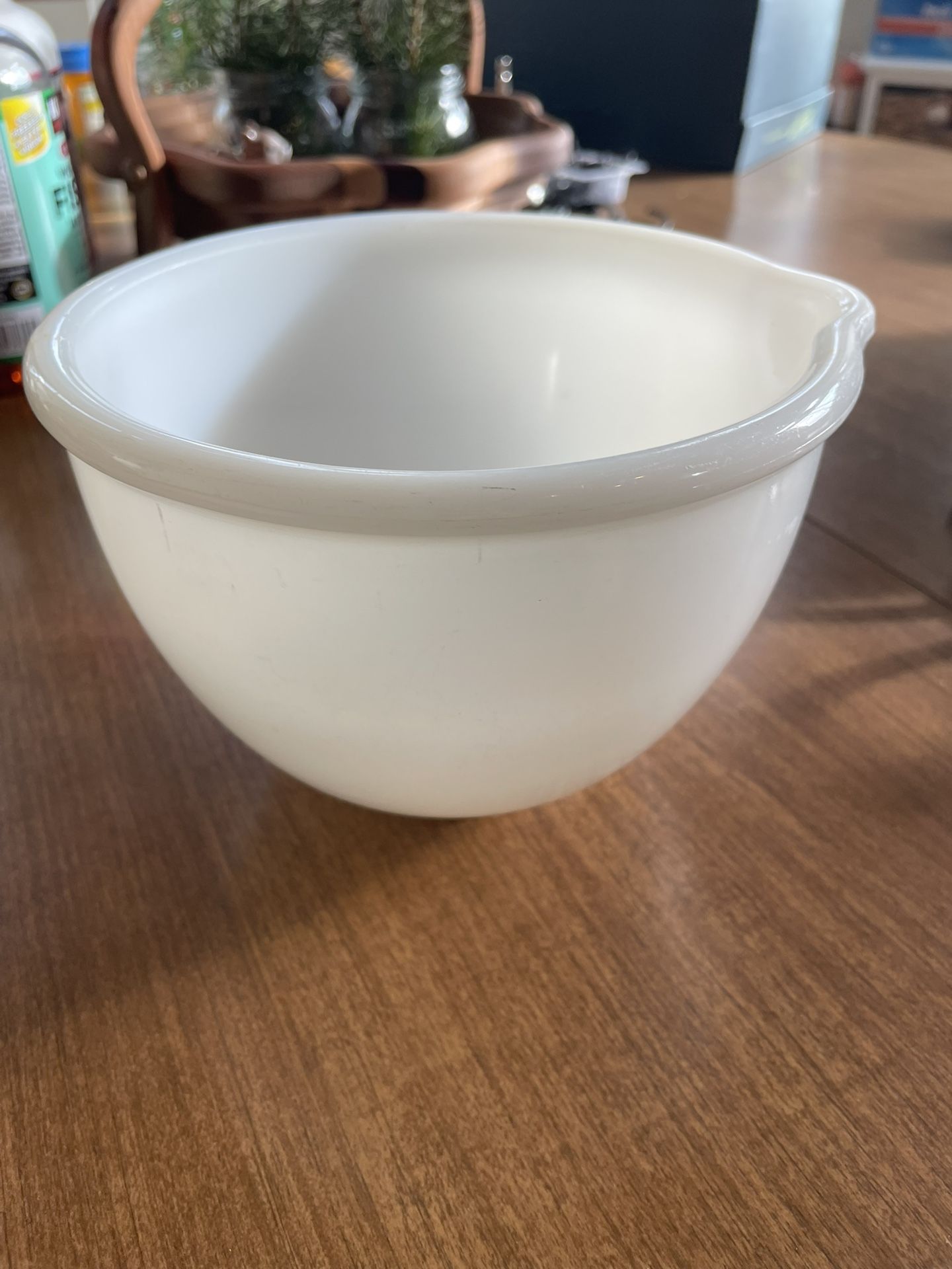 Vintage milk glass mixing bowl, small. Glasbake Made for Sunbeam imprint. Please make offer, motivated to sell.