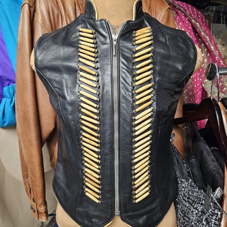 This is a work of ART! Hairpipe Bones are hand sewn with pony bead accents. All Leather with riri zipper, most expensive zipper in the world from Switzerland. This vest sold at Harley Davidson dealerships for $440.00. Very slenderizing!