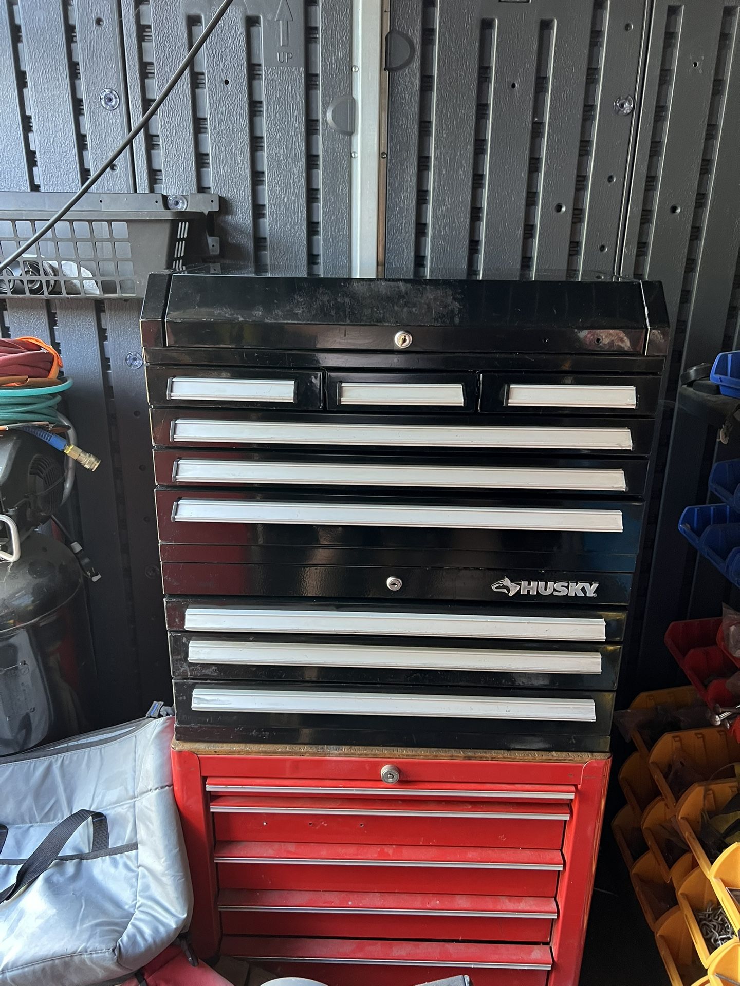 2 toolboxes stack together great working conditions. Both have locking locks and keys. Any questions about measurements please let me know.