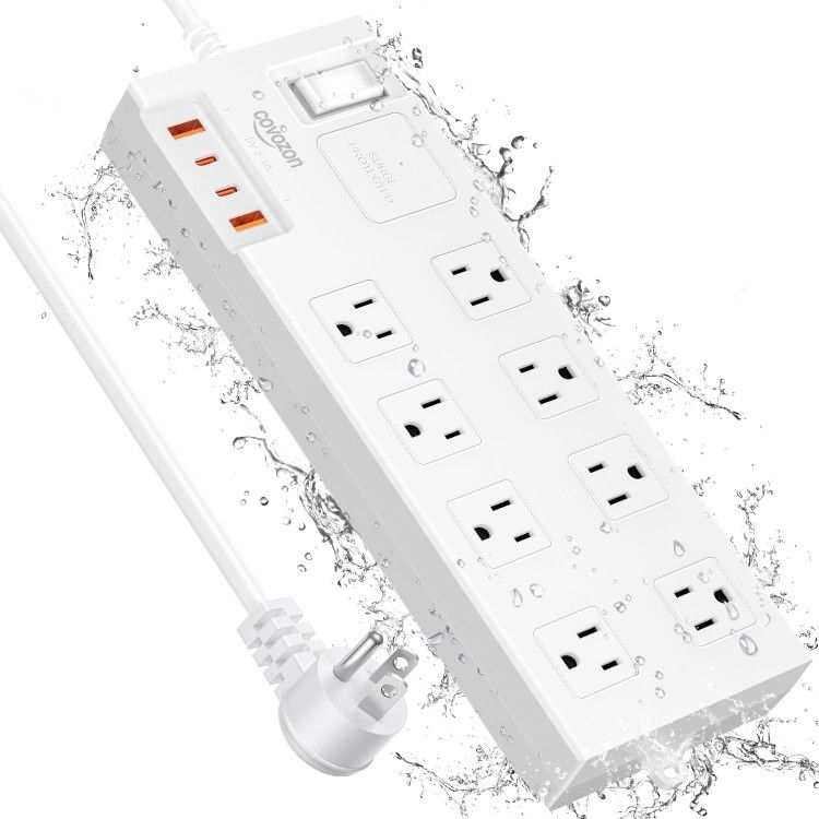 -Brand New- Power Strip Surge Protector - IPX6 Waterproof, Fire-Resistance, Overload Protection, Flat Outlet Extension Cord with Multiple Outlets USB Ports, Dorm Room Home Office Essentials, FCC UL Listed ☑️【ELECTRIC SHOCKPROOF POWER STRIP SURGE PROTECTOR】Only a US standard plug can exclusively match the deliberately designed structure of the power strip, which is patented by USTPO. After then, the circuit gets truly connected and provides power for your devices. This means foreign objects such as forks, tweezers, keys, and even children's fingers can't get powered through these electric shockproof power strips. The power strip surge protector patented design includes heat dissipation ☑️ 【9-POINT SAFETY PROTECTION SYSTEM】Particularly in areas prone to power fluctuations or lightning strikes, the power strip system combines surge protection, overload protection, fire resistance, etc., the power strip surge protector will automatically cut off power to ensure the safety of your devices when the voltage surge is overwhelming, the built-in circuit breaker can automatically shut off when overloaded, preventing overheat-caused fire, the power strip is ETL UL safety certified ☑️ 【IPX6 WATERPROOF POWER STRIP】The IPX6 waterproof power strip surge protector can withstand rain, water splash, and even water flow. But it can't be completely submerged in water as it's not IPX8 rated. Water flowing into the power strips can do no damage to the protected inner circuit due to our patented design, and it will flow out through the drainage holes on the back ☑️ 【EXTENSION CORD WITH MULTIPLE OUTLETS】The extension cord with Wide-Spaced Outlets has 8 surge protector outlets, including 6 wide-spaced outlets and 2 extra wide-spaced outlets, making the extension cord a practical design that surpasses narrow and ineffective socket panels. The extension cord provides the optimal length to accommodate your power adapters or chargers. The extension cord with multiple outlets will fulfill all your charging needs in Dorm Room, at home, and in the office ☑️ 【FLAT OUTLET EXTENSION CORD】The USB power strip with Smart IC, USB ports can provide a maximum charging current of 5V/3.1A per port. The extension cord delivers optimal charging currents to your devices based on their requirements, making the extension cord perfect for simultaneously charging cell phones, laptops, tablets, and cameras without the need for various converters. The 45° flat plug will not obstruct the bottom receptacle of your duplex wall outlet.