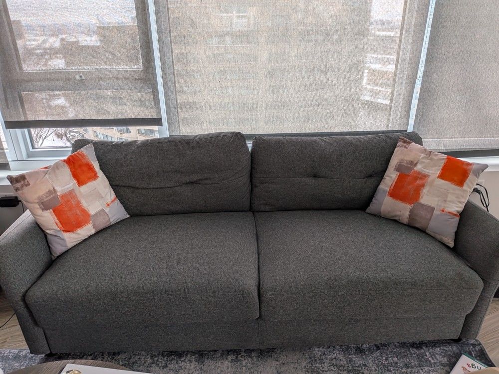 3 Seater Grey Couch Zinus Polyester Fabric With Foam and Fiber Cushions Was bought 3.5 years back. It is in great condition