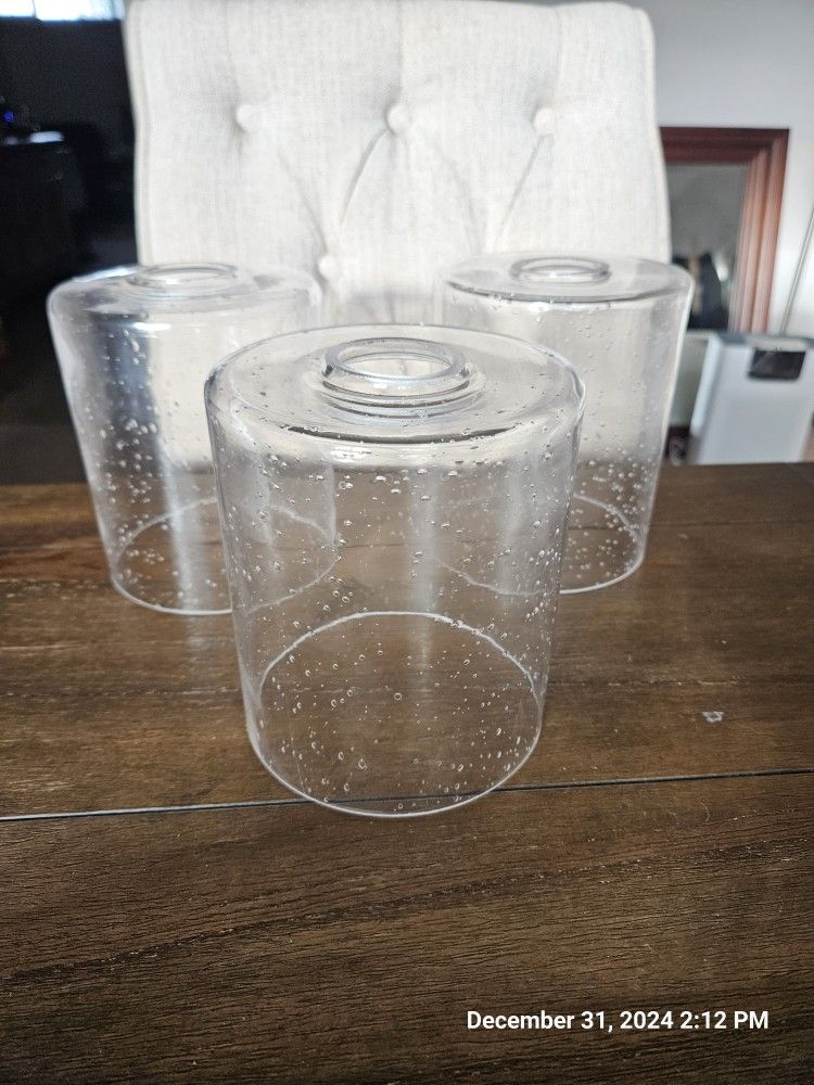 These are brand new out of the box from a lamp I just purchased. I only switched out the shades out of personal preference. Perfect condition, these are clear bubble seeded glass shades. Measurements are -1-5/8-Inch Fitter Opening, Diameter 4 7/8", Height 6".