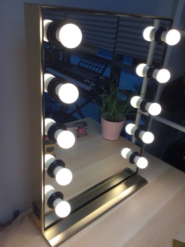 Gold Hollywood Makeup Vanity Mirror W/ Dimmable Lights