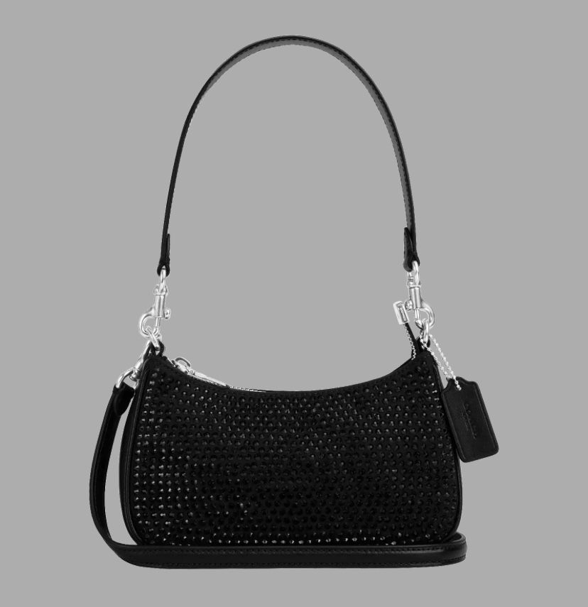 TWO DAY SALE! Gorgeous Authentic Coach Teri Mini Crossbody Bag, Black Studded Style: CX212 Color: Black Great for weddings, casual, work, school, parties, evening wear. Anytime you want. Great holiday/Christmas gift! Measurements Length: 7.75" Height: 4.75" Width: 2.25" Materials: Crystal fabric and smooth leather Fabric lining Strap: Detachable short strap with 8.5" drop Detachable long strap with 22.5" drop for shoulder or crossbody wear Features: Inside snap pocket Two credit card slots Zip closure Smoke free home!