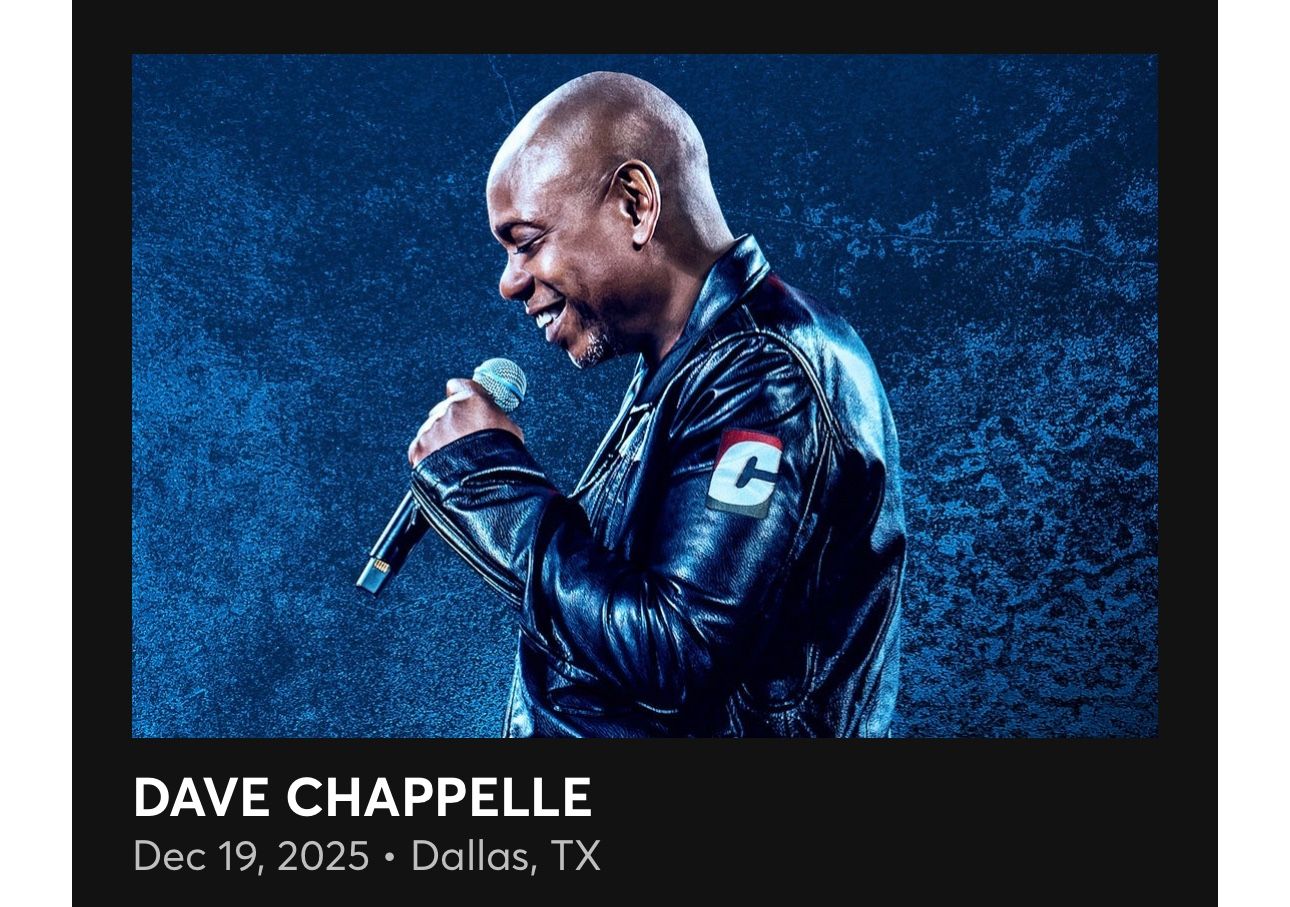 Dave Chappelle tickets -19dec25@7:30pm American Airlines Center -2 floor tickets Row E, section 13, seat 17&18…. After sale, tickets will be transferred via Ticketmaster