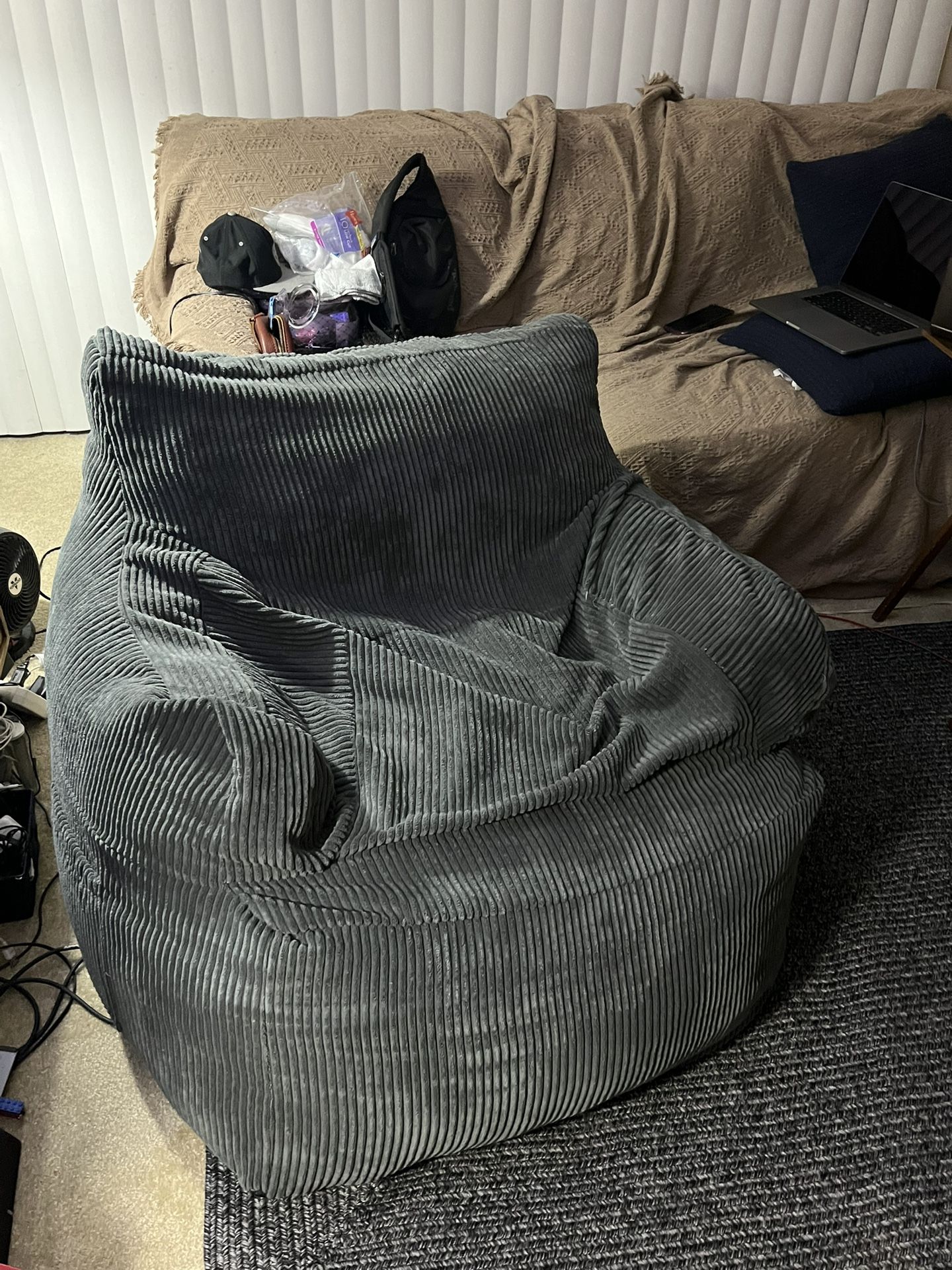 Huge stuffed chair. I had my clothes on it and towels but it’s in my way.