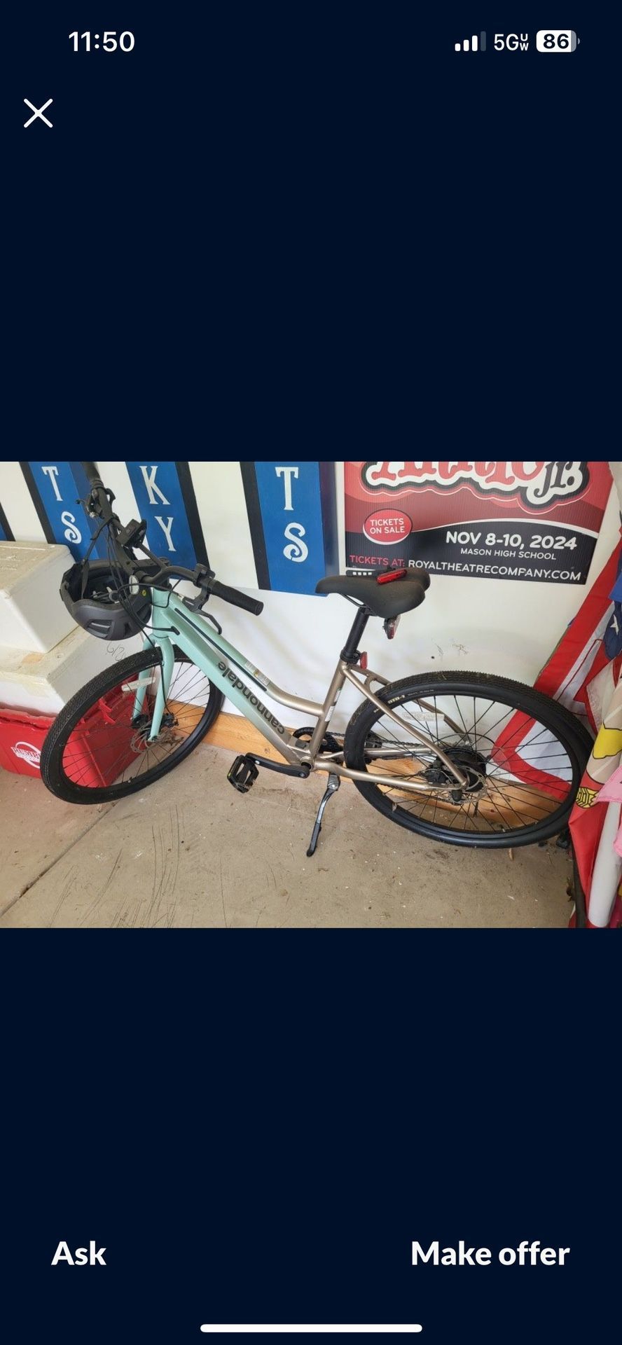 This is a brand new cannondale treadwell neo 2 step through pedal assisted electric bike goes about 23 miles an hours and has barely been ridden it comes with a helmet a valve adapter and a special Alan tool specifically for the front tire removal only thing this bike needs to get on the road is new break pads and someone to ride it