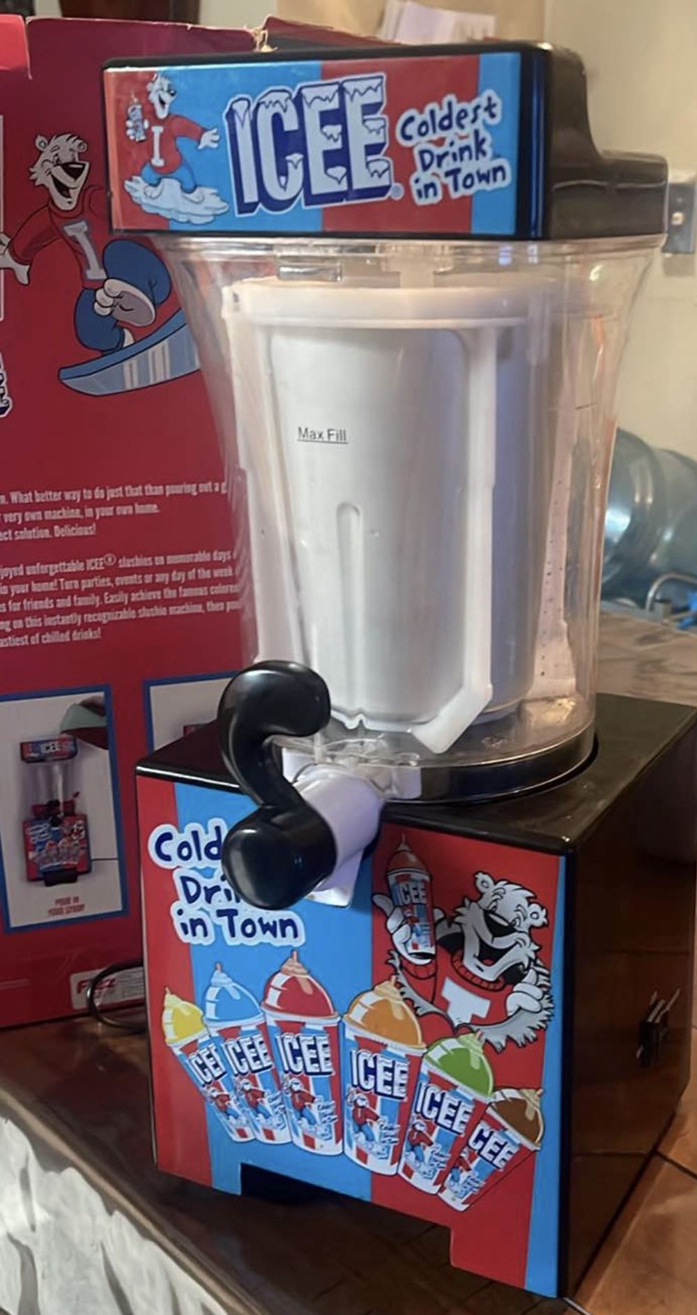 Genuine ICEE Brand Counter-Top Sized ICEE Slushie Maker - Spins Your Pre-Chilled Ingredients with Your Ice into ICEE Slushies! All sales are AS-IS, WHERE-IS Todas las ventas son en el estado en que se encuentran. First come first serve Por orden de llegada Delivery available for extra charge Entrega disponible por un cargo adicional Payments are flexible! Major credit cards, Zelle, and Venmo are accepted. Pagos flexibles! Se aceptan las principales tarjetas de crédito, Zelle y Venmo.