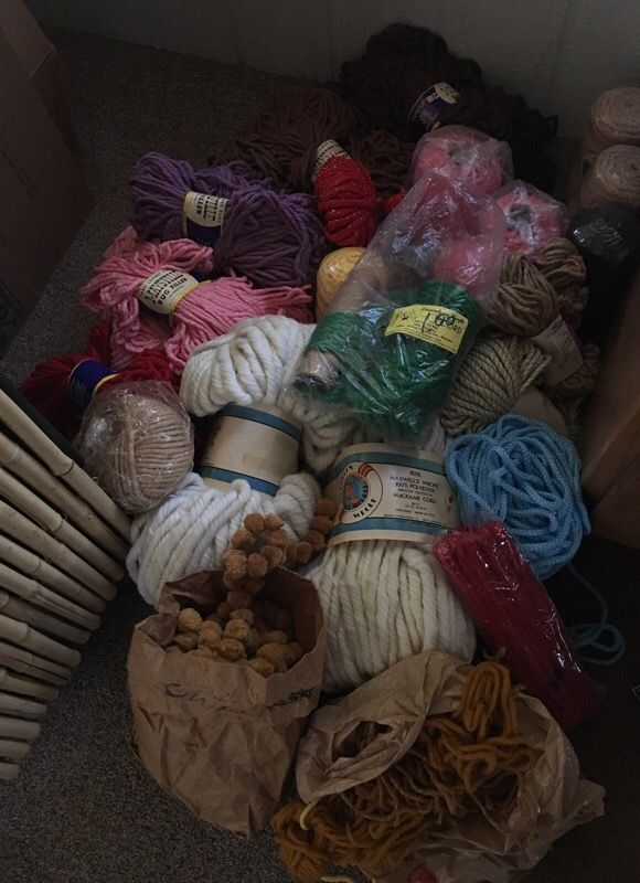 Lots of yarn in different sizes and strengths. $1-6. U pick up