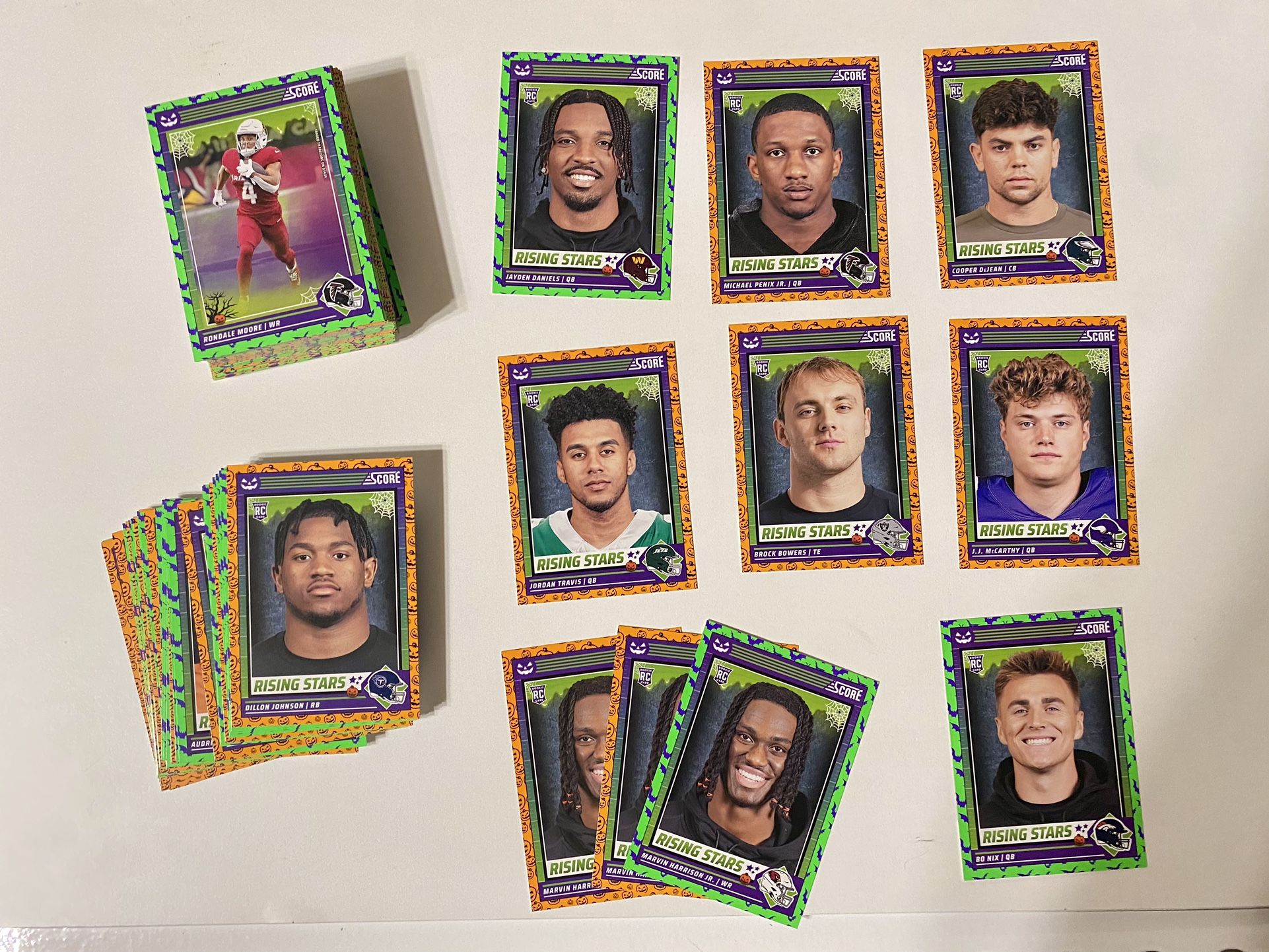 A few Moments ago 😁. I opened up a 40 bundle packs w/3 cards in each (120 Total). All of this for $10. I’m not in the Hobby. 1 Rising Stars Rookie was in each pack. 40 RC’s Including Jayden Daniels, 3 Marvin Harrison Jr., Bo Nix, Brock Bowers, Michael Penix Jr and others. Location: SE Vancouver Pick Up