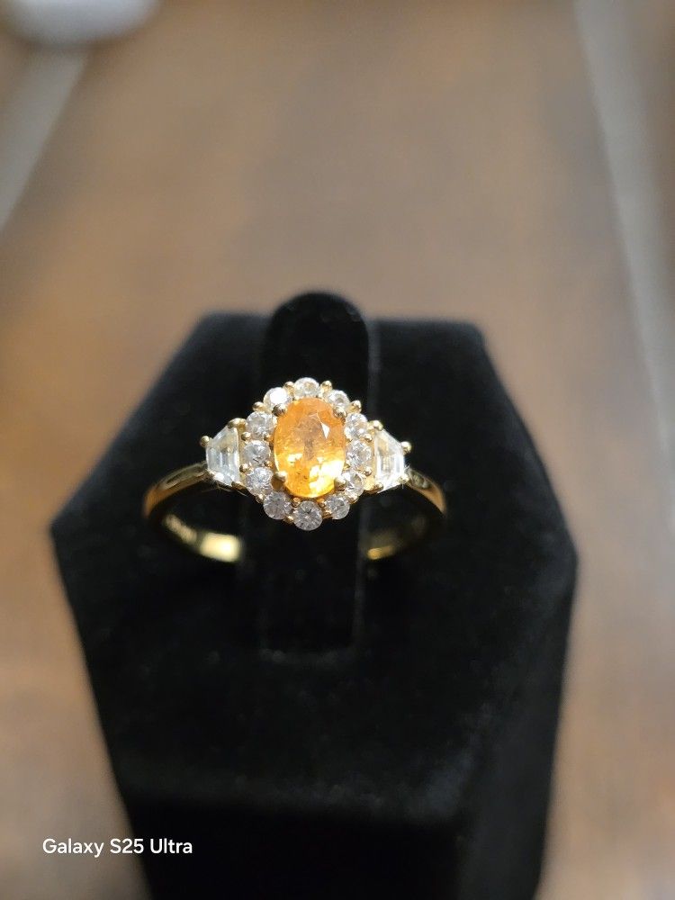 Premium Viceroy Spessartine Garnet, White Zircon Halo Ring -Size 7